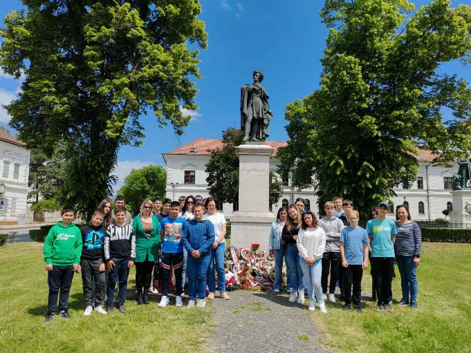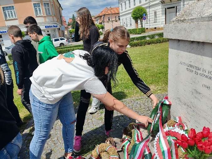 Az első állomásunk a kirándulás során Rimaszombat városa volt. Rimaszombat főterén (Tompa tér), a református templom közelében két jelentős köztéri szobor is található, amelyek híres magyar költőknek állítanak emléket, Tompa Mihálynak és Petőfi Sándornak. Rövid megemlékezést tartottunk, majd megkoszorúztuk Petőfi Sándor szobrát.
