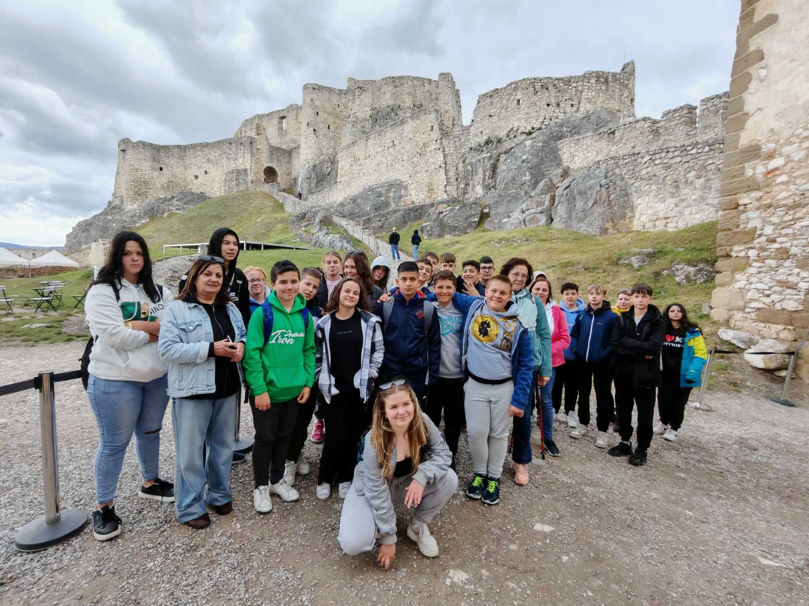 Ezt követően a hatalmas kierjedésű szepesi vár maradványait jártuk körbe. A szepesi vár 4 hektáros (41426 m²) kiterjedésével Közép-Európa egyik legnagyobb vára. A vár az UNESCO Világörökség része 1993 óta, a környező történelmi helyszínekkel együtt. Lőcsétől 15 km-re keletre Szlovákia keleti részén, Szepesváralja mellett áll,   634 m magasan. A környék fölé mintegy 200 méterrel magasodó mészkősziklára épült. Ez a lenyűgöző erődítmény nemcsak méretei miatt figyelemre méltó, hanem történelmi és kulturális jelentősége miatt is. A vár elődjét a 12. században építették kőből, valószínűleg egy korábbi szláv erődítmény helyén. Első írásos említése: 1209 – IV. Béla adományozása során. A tatárjárás után bővítették ki, és fontos védelmi szerepet töltött be. Ebben az időszakban a vár a Szepesi ispánság központja volt. Tulajdonosai közé tartoztak a Szapolyaiak, majd a Thurzó és Csáky család. Fokozatosan átépítették gótikus, majd reneszánsz stílusban. 1780-ban tűzvész pusztította el, vélhetően villámcsapás miatt. Ezután elhagyatottá vált, köveit részben elhordták.